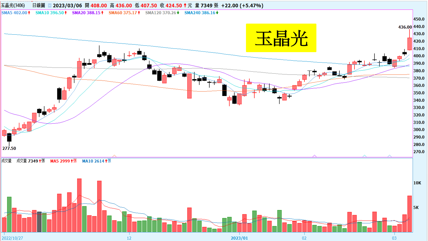 Factset 調查:玉晶光EPS預估上修至30.59元,預估目標價為450元