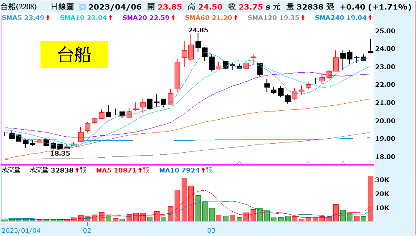 最新獲得海軍6艘康定級軍艦船艦載台性能提升案預算約72億元,2月簽約生效,預計七年內全部完工,台船可先取得1成簽約金。