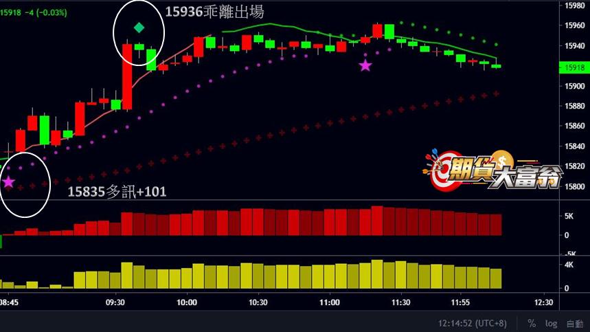 今天善用大富翁軟體,開盤買訊搭配籌碼偏多,獲利百點出場