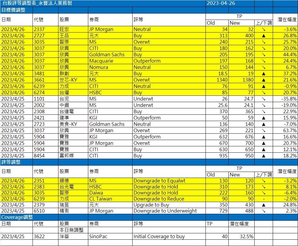 4/27(四)截至4/22初領失業救濟金人數預期由24.5萬人升至25.0萬人;1Q23 GDP季比年化成長率初值預期由2.6%降至2.0%;3月成屋待完成銷售MOM預期由0.8%升至1.0%。