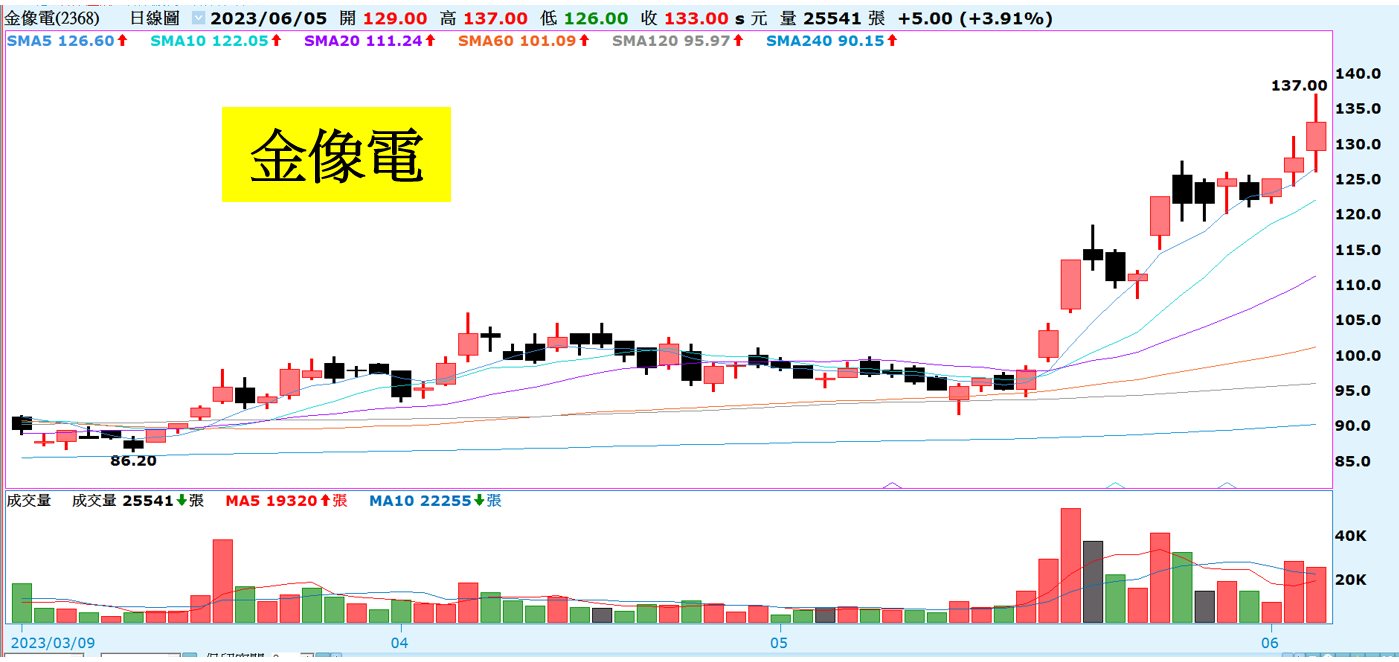 技術面持續創高、所有均線多頭排列,多頭走勢相當明顯
