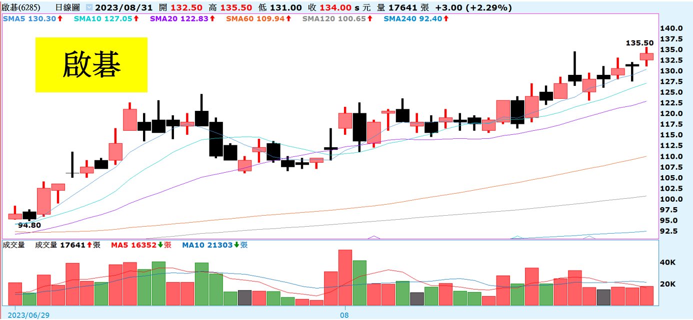 技術面力守月線、半年線上方,呈現震盪向上走勢