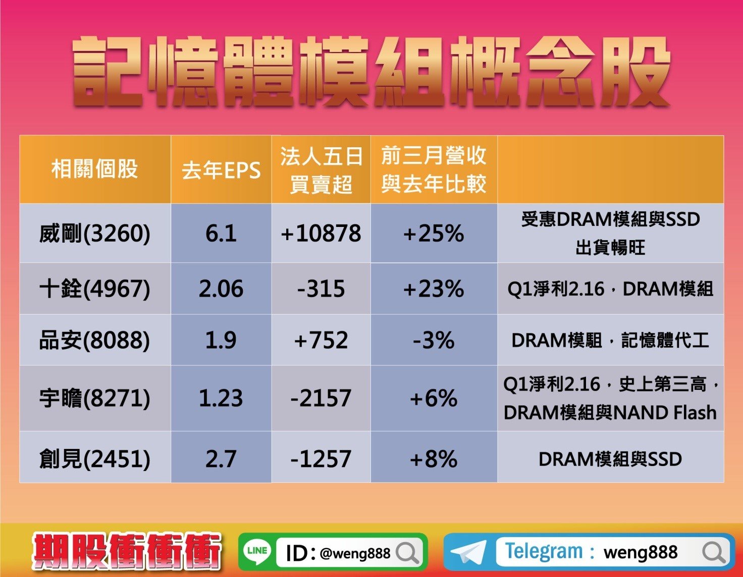 儲存設備供應鏈包含HDD與SSD供應商表現都不錯,記憶體模組大廠威剛、創見、宇瞻、十銓都可多留意,NAND Flash控制IC群聯都在周五多檔攻上漲停,指標股因為半導體製造成本大增之下,全面調漲NAND Flash控制IC與模組訂單價格,漲價之後對後續業績有機會明顯成長。