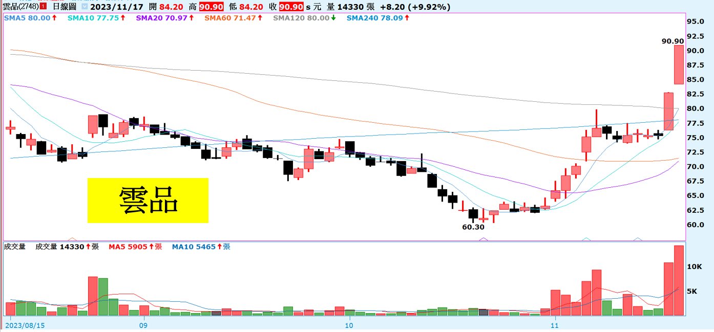 技術面日K線再創高,各短均線多頭排列,沿著五日線上漲