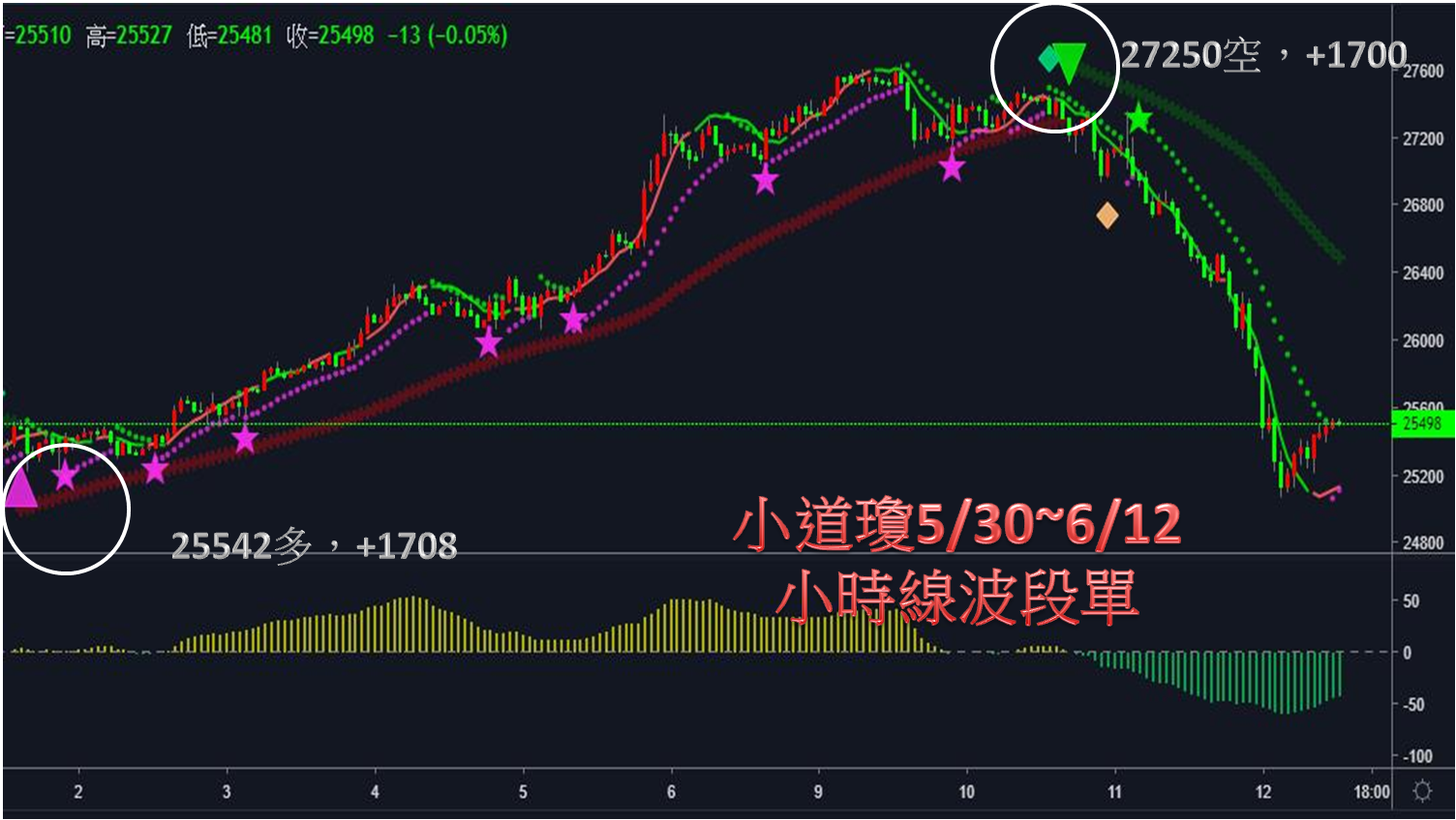 綠色三角形為波段空訊建立空單