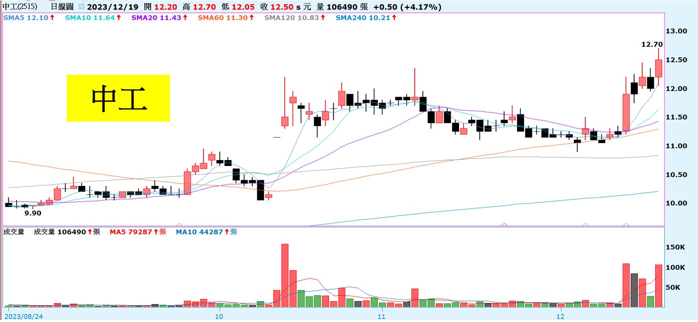 中工的科技廠辦「中工雲宇宙AI園區」開賣後,受惠客戶大單挹注帶動股價