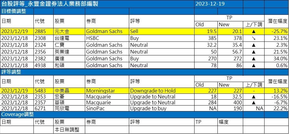 主要外資準備過耶誕假期,預計指數震盪個股表現
