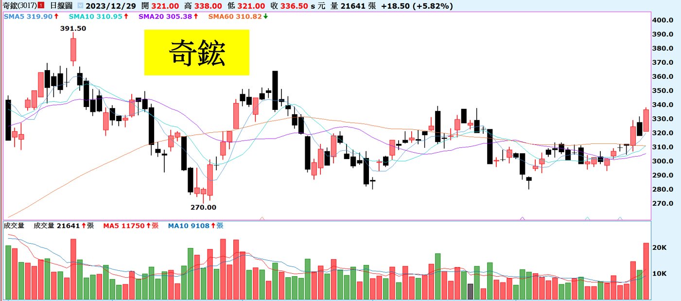 奇鋐為散熱模組廠,今年累計前11月營收為535.76億元,年增4.13%,前三季EPS 9.76元