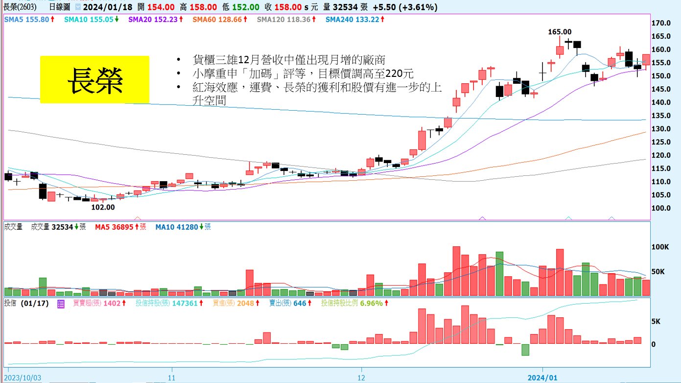 紅海效應,運費、長榮的獲利和股價有進一步的上升空間