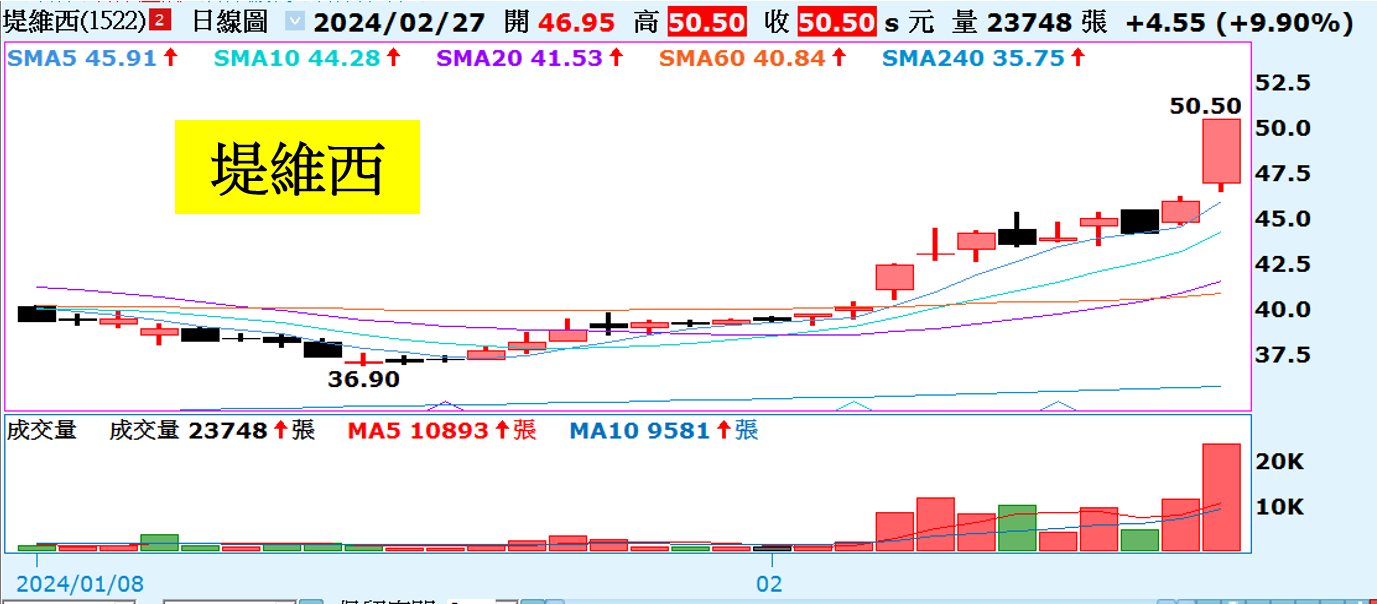 類股方面,化工股受惠台積電熊本廠開幕,多檔特化股仍續強