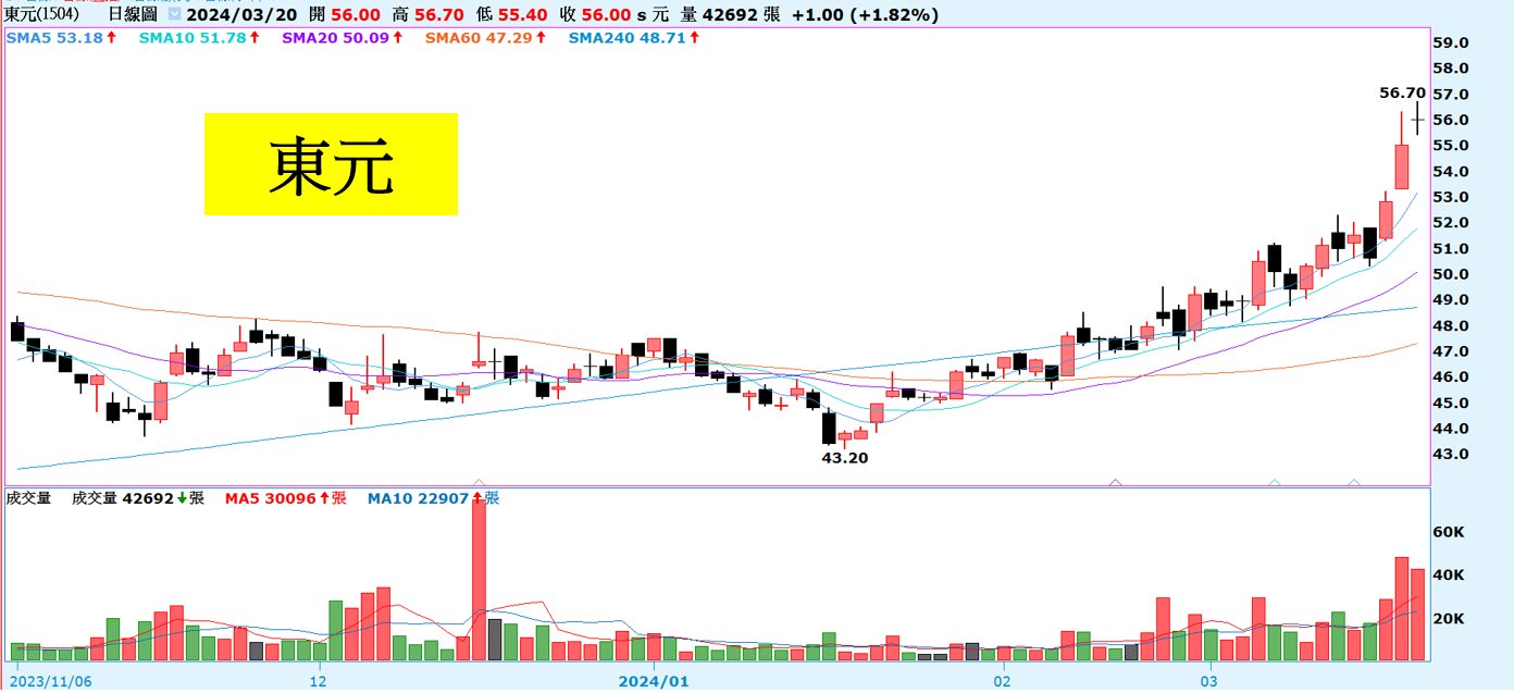 法人預估東元 2024 年營收615.53 億元(YoY+3.6%) ,毛利率 25.97% ,稅後EPS 3.32 元