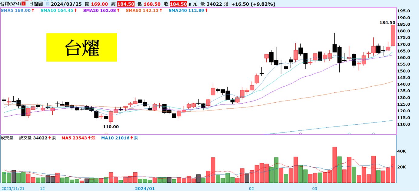 近期可以留意投信作帳股如台燿攻上漲停