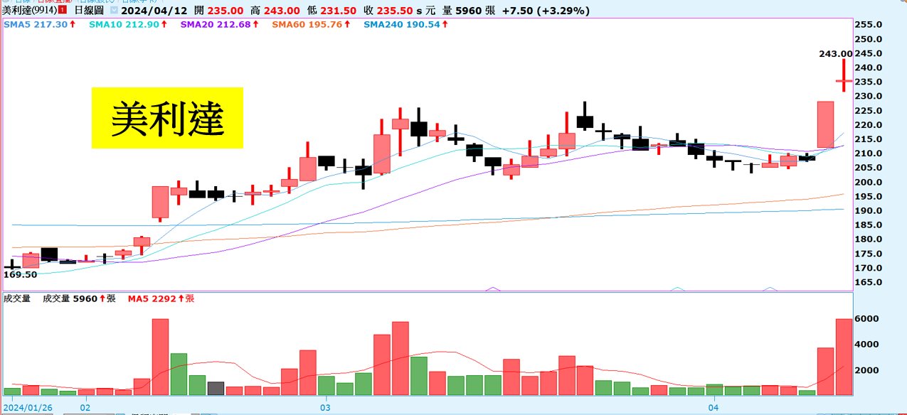 自行車大廠美利達目前訂單能見度約4個月,今年在庫存狀況改善下,2月開始逐步提升產能,訂單顯示3月可出貨3萬台自行車 、5月4萬台 、7月5.5萬台自行車,預期營收將有逐步回溫的趨勢