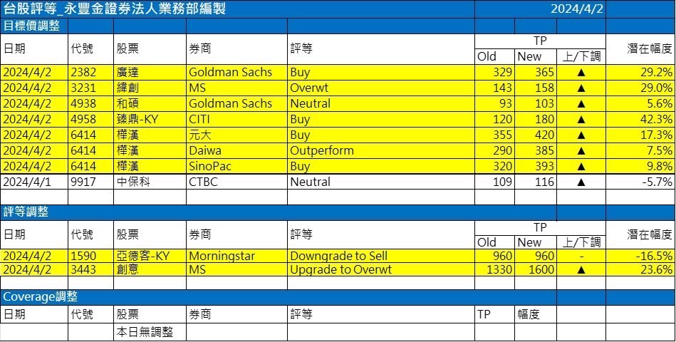 4/25(四)1Q24 GDP季比年化成長率初值預期由3.4%降至2.5%;截至4/20初領