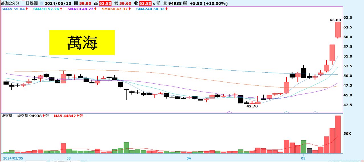 全球區域情勢緊張,導致海運報價上揚,萬海調漲5月美西運價15%、美東調漲11%