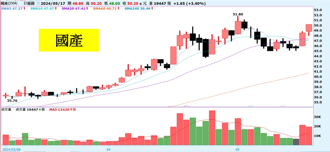 國產為混凝土大廠,第一季稅後EPS 0.7元,若扣除2023年同期出售出大陸常熟廠的業外進帳墊高基期等,整體獲利維持穩健