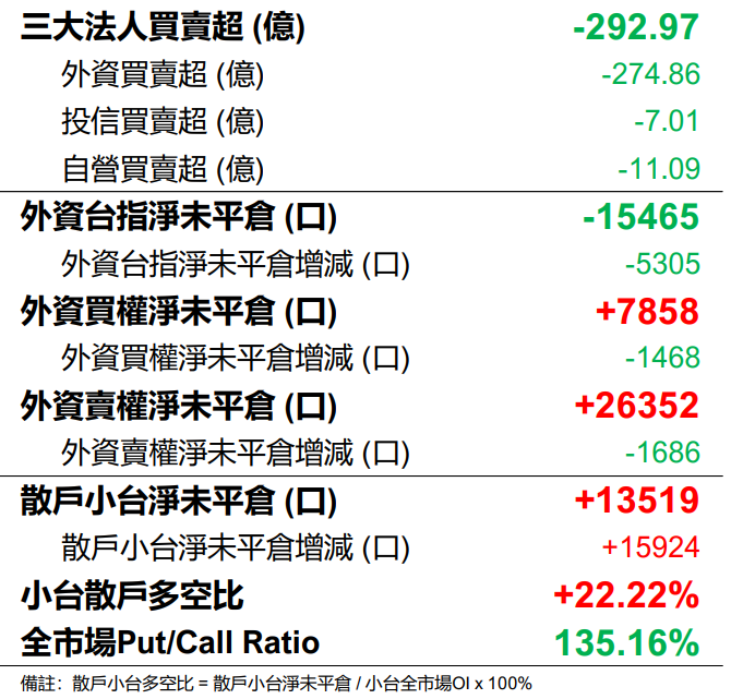 籌碼面外資轉賣超且金額擴大,期指空單超過1.5萬口