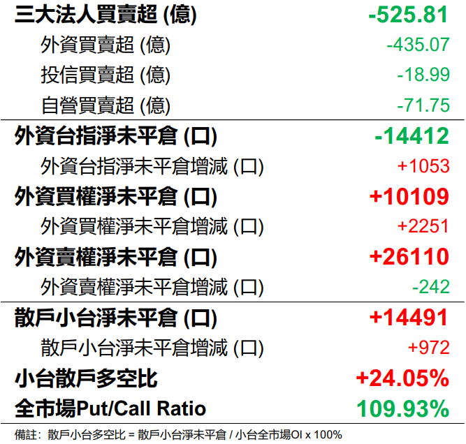 籌碼面外資轉賣超且金額擴大,期指空單超過1萬口