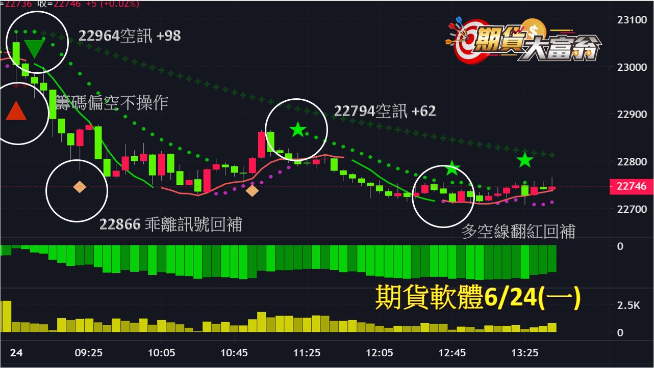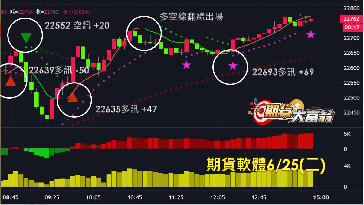 第三次於隨後22635點出現多訊作多,直至多空線翻綠出場,獲利47點;