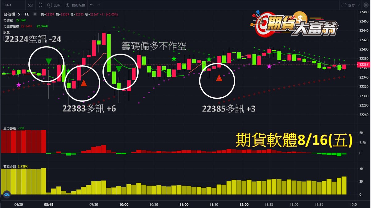 第3次於22385點出現多訊作多,小賺3點;