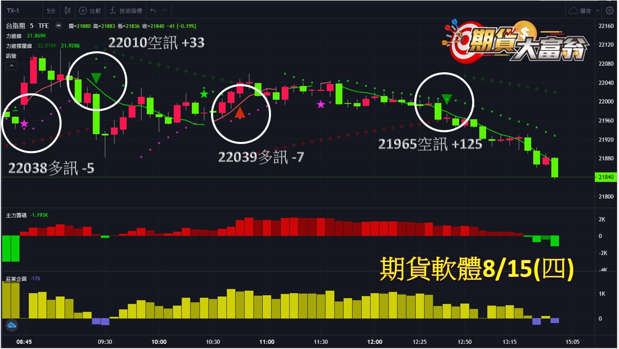 第1次於開盤22038點出現多訊作多,小虧5點;