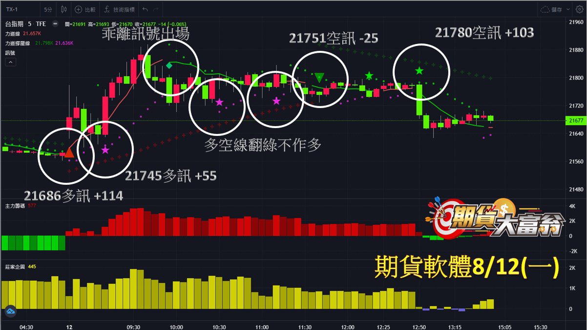 第1、2次於早盤21686、21745點出現多訊作多,直至乖離訊號出場,可分別獲利114、55點;