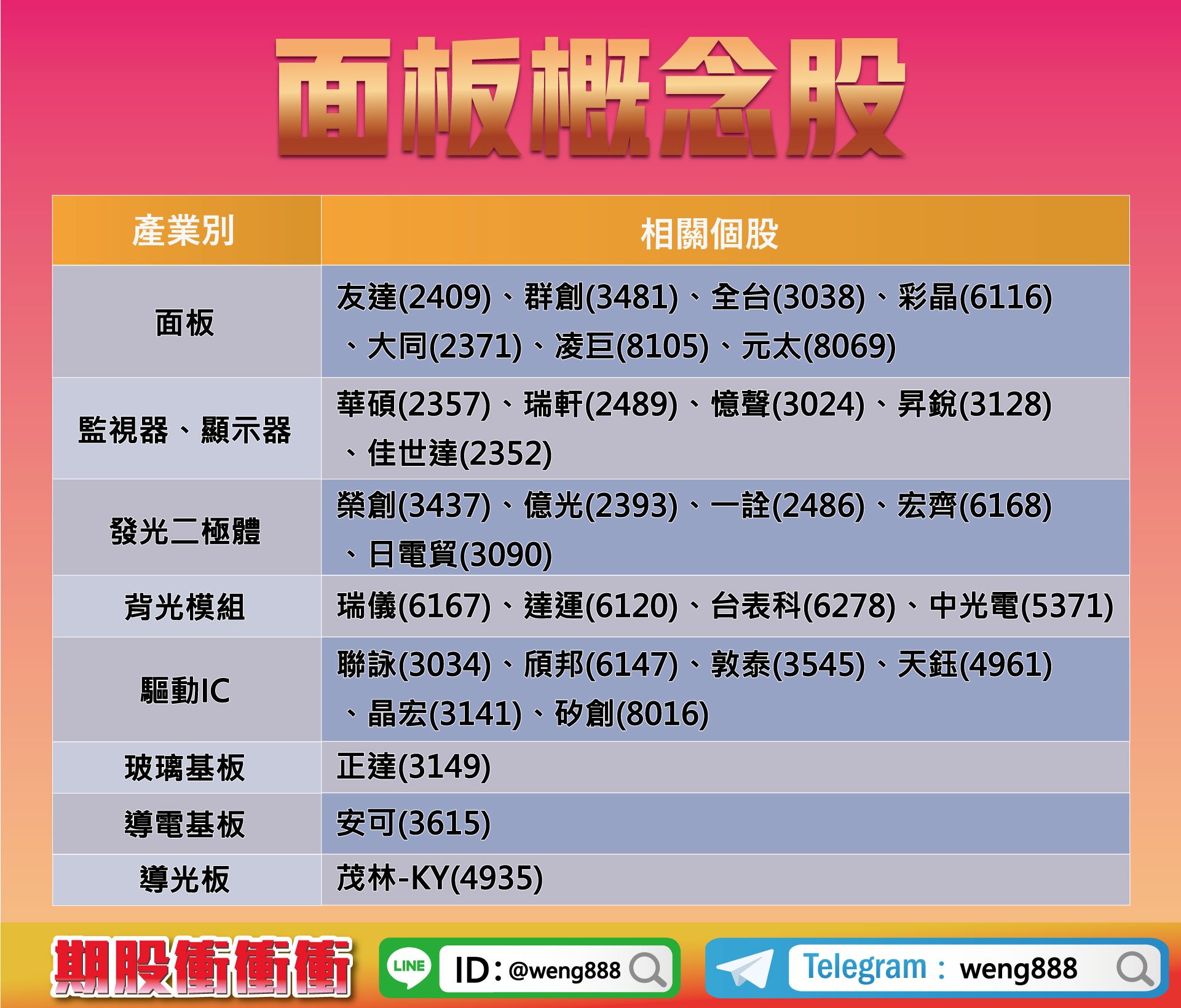 面板雙虎友達與群創為今年非常強勢的權值股,同時也屢獲法人的青睞,去年受到疫情影響,帶動居家辦公、遠距教學需求大增,大幅拉抬筆電等大尺寸面板出貨量,2020年下半年全球電視需求出現大幅成長,帶動電視面板漲價。整個面板供應因產能滿載影響加上缺料問題,整體需求在2021年持續上升。根據 TrendForce 研究預估全年筆電面板出貨將來到2億4900萬片,年成長10.5%。