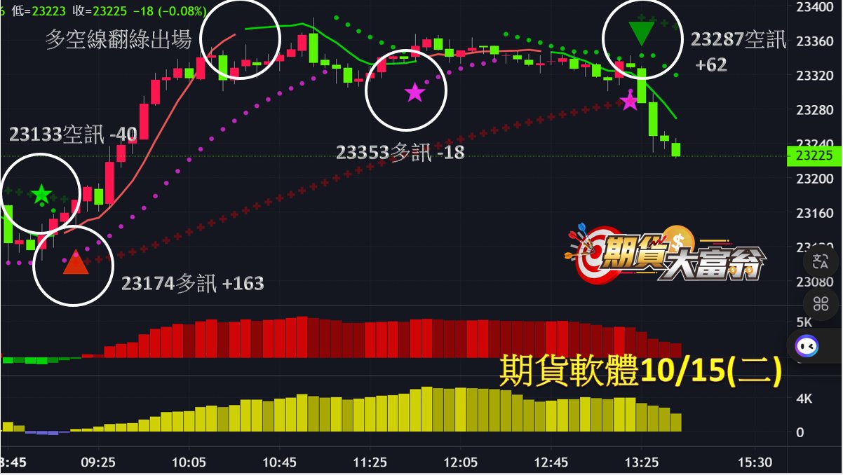第1次於早盤23133點出現空訊作空,虧損40點;