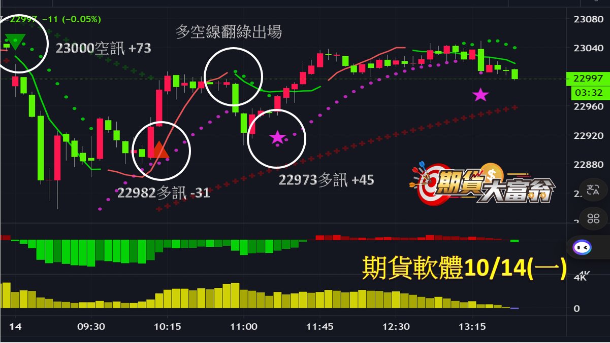 第1次於開盤23000點出現空訊作空,獲利73點;