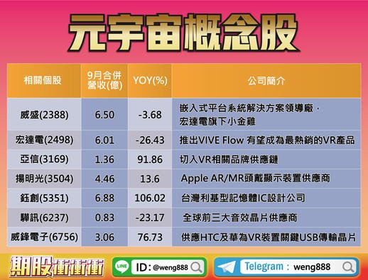 元宇宙概念股的宏達電、威盛、鈺創等股價近期漲勢亮眼。