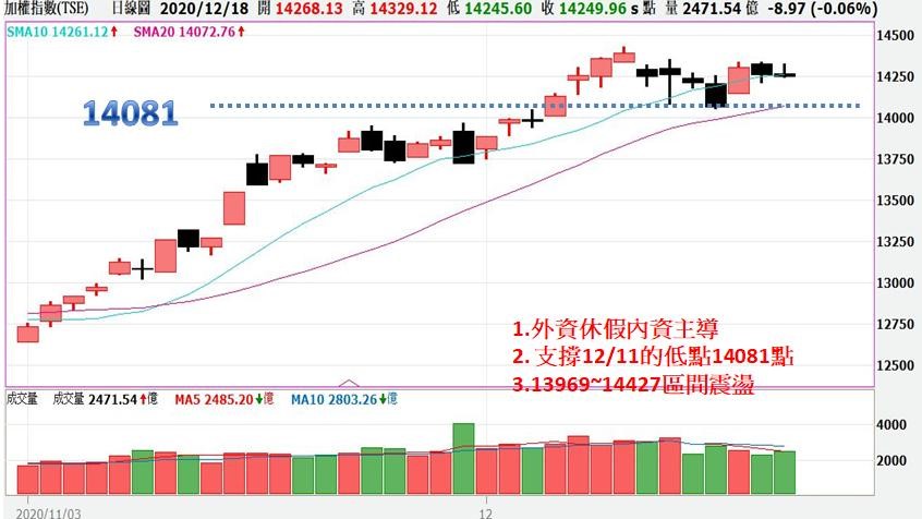 多方支撐12/11低點14081點沒破以前維持多方