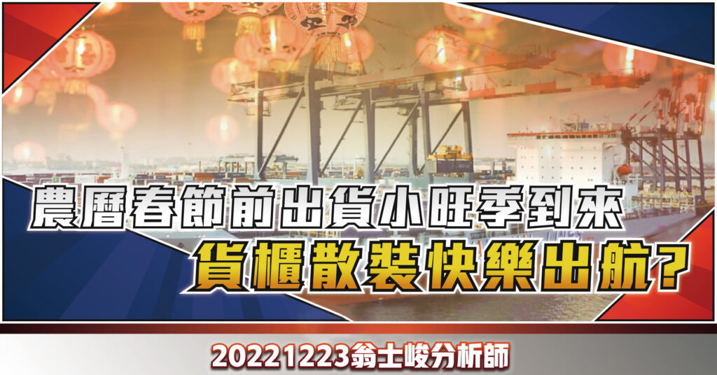 航海王本周再度揚帆! 受惠農曆春節前出貨小旺季帶動,長榮、陽明遠東到美西線全面滿載, 明年元旦起加徵附加費、漲…