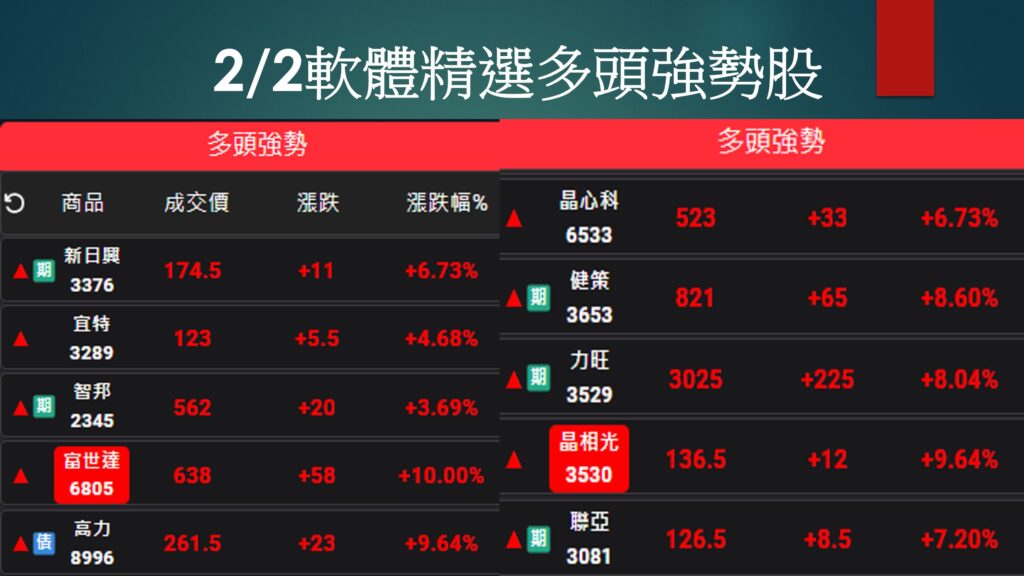 影音專區, 盤後影音靠建準漲停再奪經濟日報周冠軍 2024/02/02 Posted on 2 2 月, 20242 2 月, 2024 by admin 02 2 月 【摘要】 輝達與美超微續攻,Meta盤後股價狂飆,封關前買盤積極卡位AI概念股 下周一為持股最後調整日,建議抱… Continue reading →