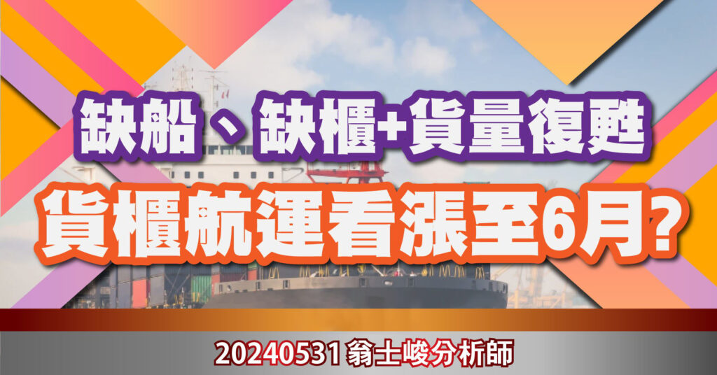 上週五(5/24) SCFI(上海航交所運價指數)續漲, 市場運價持續反應短期供不應求現象,5月中國在長假過後…